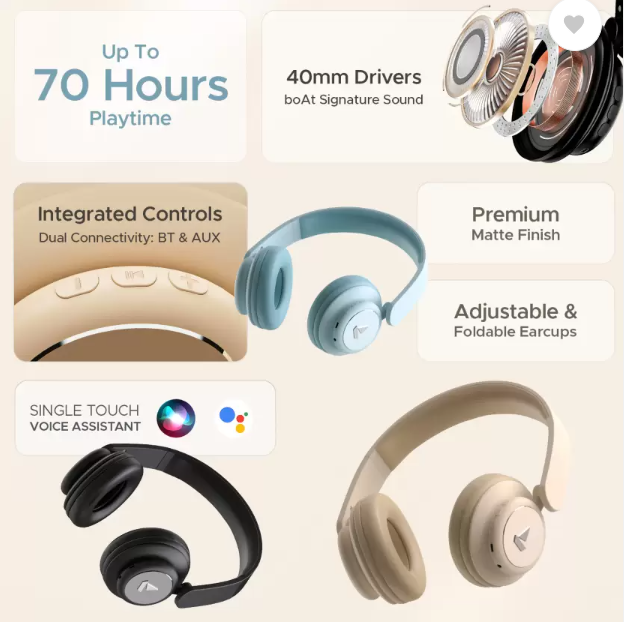 • Type-c Charging | 40mm Drivers | 70 hours playtime (at 60% volume)