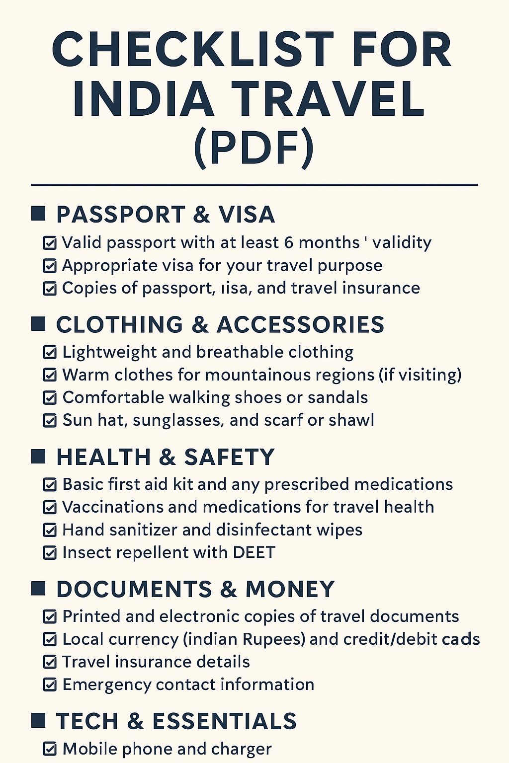 Checklist for India Travel (PDF)